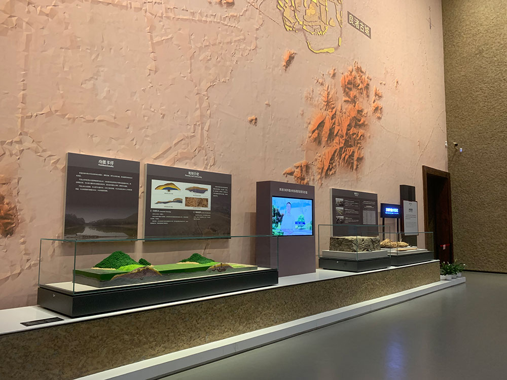 Museet dækker et areal på 40.000 kvadratmeter, et bygningsområde på 10.000 kvadratmeter og et udstillingsområde på mere end 4.000 kvadratmeter, inden for de tre almindelige udstillingshaller, midlertidige udstillingshaller samt kulturelle relikvier, speciel opbevaring og rekreativt plads, der er åbne for offentligheden og andre funktionelle blokke. Liangzhu Museum Building, 'En jade-kegle spredt på jorden' som designkoncept, ikke helt parallelt med sammensætningen af den fire-lange bygning, kendt som 'samlingen af skatte i boksen'. Hele bygningen fremhæver egenskaberne ved enkelhed, robusthed, tyngde og atmosfære, der fokuserer på kombinationen af landskab og natur, i landskabet af bjerge og vand, vilde græs og dyster, placeret mellem den blå himmel og hvide skyer, lader folk stærkt føle en slags harmoni og integration af kunst og natur, historie og modernitet. Bygningens ydre vægge er alle lavet af gul hulsten, der ligner jade langvejs. Inde i gården er der tre temaer gårdhave, der bruger elementer af kinesisk havearkitektur og pyntet med arkitektoniske skitser såsom skønhedsmager.